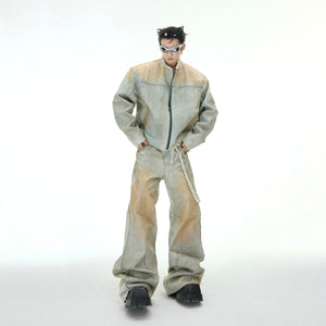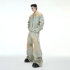 Cut from high-quality denim treated with special vintage wash techniques, these jeans showcase unique texture and color variations. The durable, wrinkle-resistant fabric blends retro charm with modern streetwear edge for head-turning appeal.