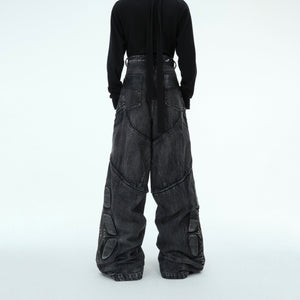 Washed Black Armor Distressed Jeans - Cyberpunk Streetwear Essential
