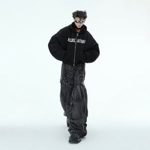 Born from the collision of dystopian survival gear and neon-lit cyberpunk, these jeans redefine streetwear rebellion. The asymmetric paneling and tactical strap details transform your silhouette into a walking art piece. More than pants - it's wearable futurism for those who dare to stand out.