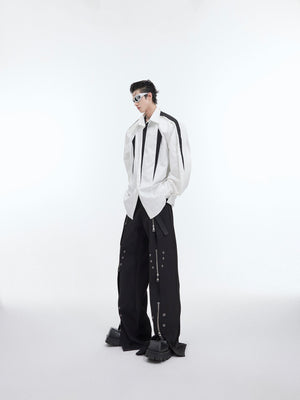 This irregular patchwork shirt redefines streetwear with its deconstructed aesthetic and oversized silhouette. Perfect for those who dare to stand out with avant-garde fashion statements.