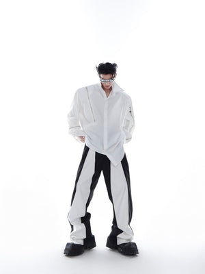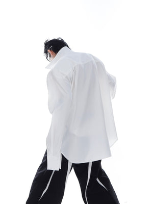 Oversized White Shirt-Jacket with Asymmetrical Cut & Metal Zipper