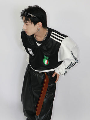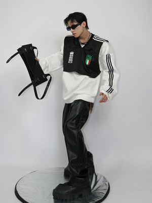 Oversized Drop-Shoulder Sweatshirt-Tank Top Layered Long Sleeve T-Shirt