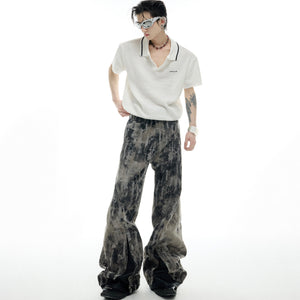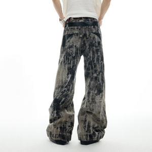 Step up your streetwear game with these statement-making vintage jeans. Featuring a distressed ink-splashed wash and micro flare silhouette, these jeans deliver authentic retro appeal with modern streetwear edge.