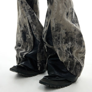Vintage Splatter-Distressed Straight Flare Jeans with PU Leather Patch