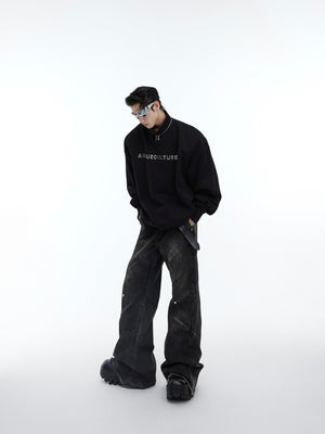 Make a bold statement with this deconstructed oversized hoodie that blends urban aesthetics with high-fashion details. The classic black colorway gets an edgy upgrade with metallic logo prints and chain accents at the collar.