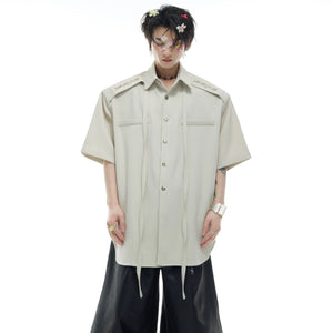 Oversized Summer Shirt with Shoulder Pads - Streetwear Ribbon T-Shirt