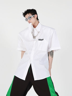 Metal-Tie-Detail Oversized Short-Sleeve Shirt - Streetwear Style