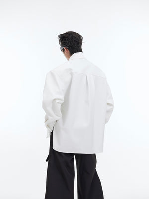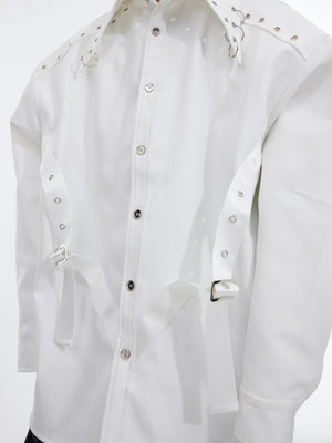 Deconstructed White Shirt with Shoulder Pads-Metal Details-Streetwear