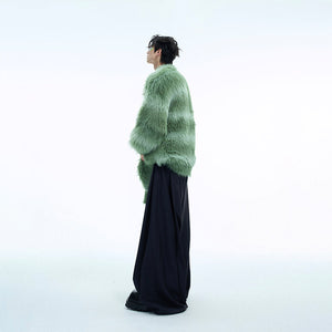 Chunky Knit Sweater - Fuzzy Gradient Ribbon Design - Oversized Streetwear