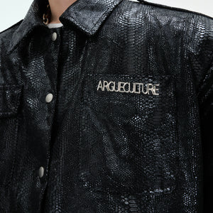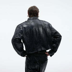 Liquid-Crocodile Shiny Cropped Jacket - Streetwear Oversized Top