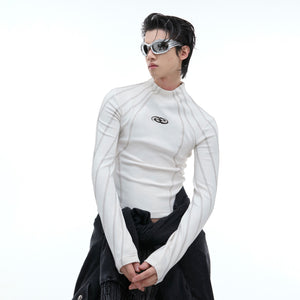 Streetwear Cropped Long-Sleeve T-Shirt - Metallic Trim Mock Neck Top