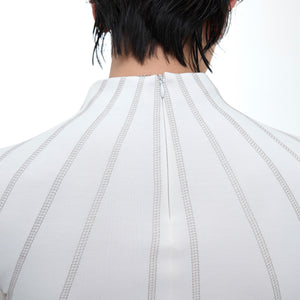 | Design Details | Embossed, Draped tailoring, Metal accents, Piping/Trim |