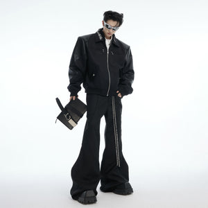 Deconstructed Flared Pants with Metal Chains - Streetwear Fit