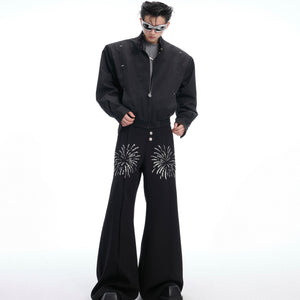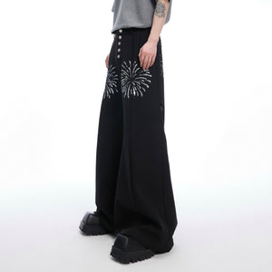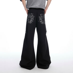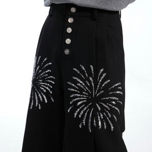 Glitter Flare Pants - High Waist Wide Leg with Metal Buttons
