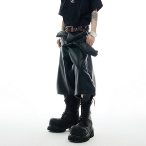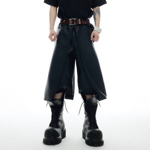 Deconstructed Leather Shorts - Loose Fit Streetwear Summer Pants