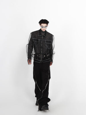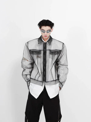 Deconstructed Mesh Punk Jacket - Streetwear Overshirt with Raw Edges