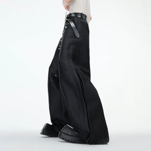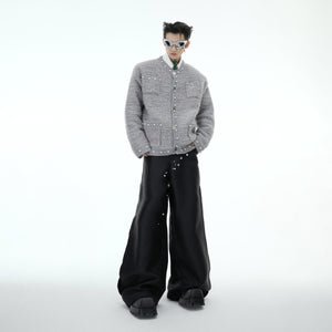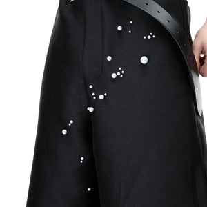 Pearl-Embellished Waxed Wide-Leg Pants - Streetwear Style