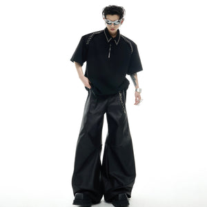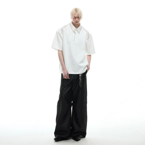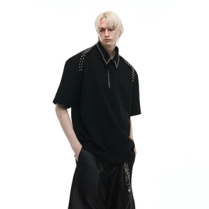 Metal-Trim Polo Shirt - Half-Zip Short Sleeve - Streetwear Top