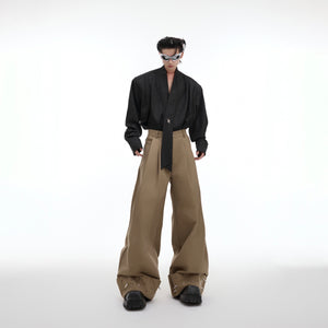 Oversized Metal-Stud Casual Pants - Droopy Wide-Leg Pants for Streetwear
