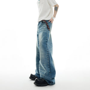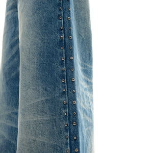Vintage Distressed Straight-Flare Jeans with Metal Studs