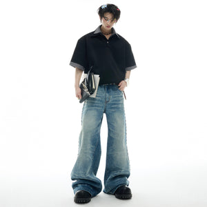 These Retro Worn-Crease Flared Jeans bring serious 70s vibes to your modern streetwear rotation. The relaxed fit flares from knee to hem for that iconic silhouette, while our signature beaded accents add unexpected texture and dimension.