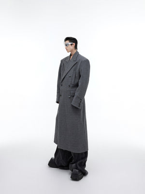Deconstructed Wool Trench Coat - Oversized Shoulder Long Streetwear Jacket